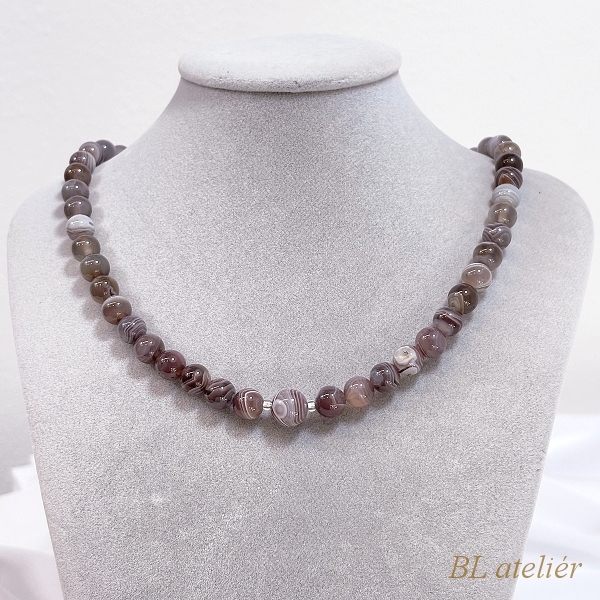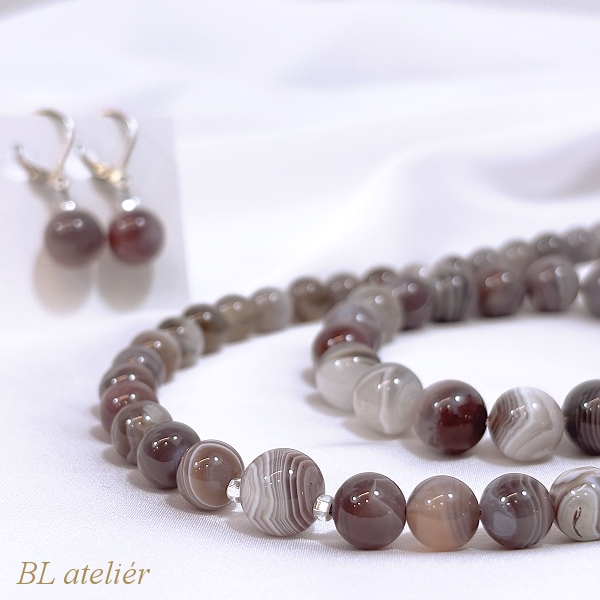 Pro milovnici stříbrnošedých tónu je krásný ACHÁT Botswana se stříbrným rokajlem.