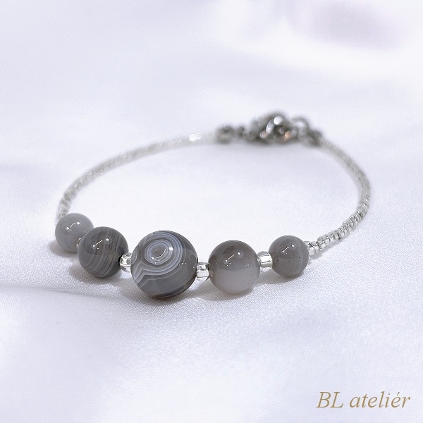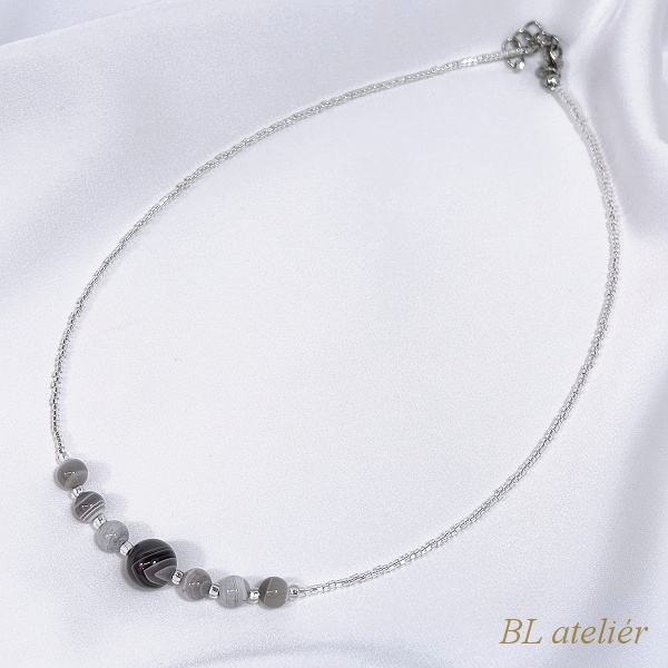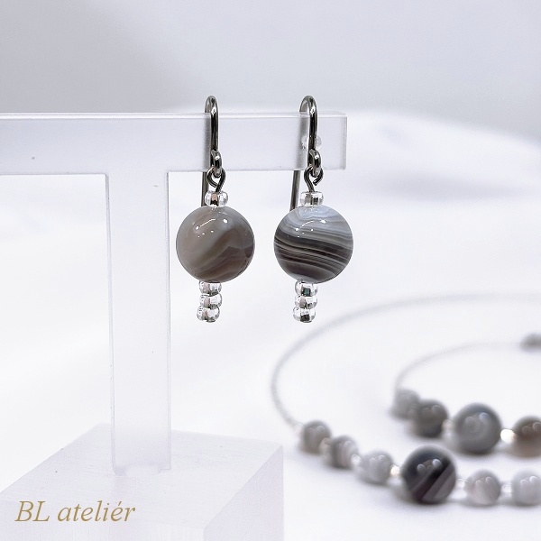 Stříbrnošedé tóny ACHÁTu Botswana doplněné stříbrným rokajlem.
