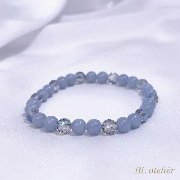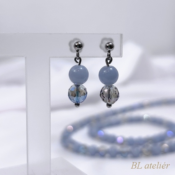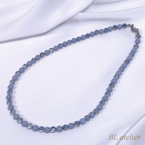 Jemné šperky v světlemodrých barvách. Matný hladký ANGELIT krásně ladí s fasetovaným KŘIŠŤÁLEM modrá aqua aura.