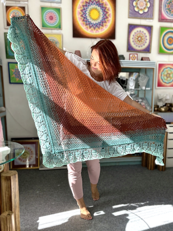 Veliký ručně háčkovaný originální doplněk k džínám i k šatům, v létě v chladnějších večerech přes ramena, v zimě zahřeje a ozdobí.