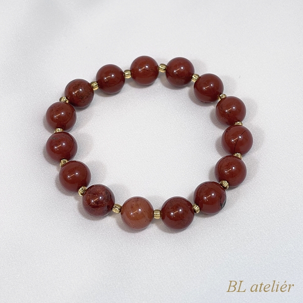 Výrazný doplněk - náramek z červeného JASPISU doplněný skleněným rokajlem zlaté barvy.