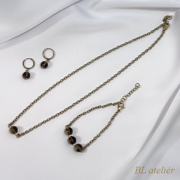 Elegantní jednoduché šperky z kuliček ZÁHNĚDY doplněné silnějším řetízkem z chirurgické oceli.